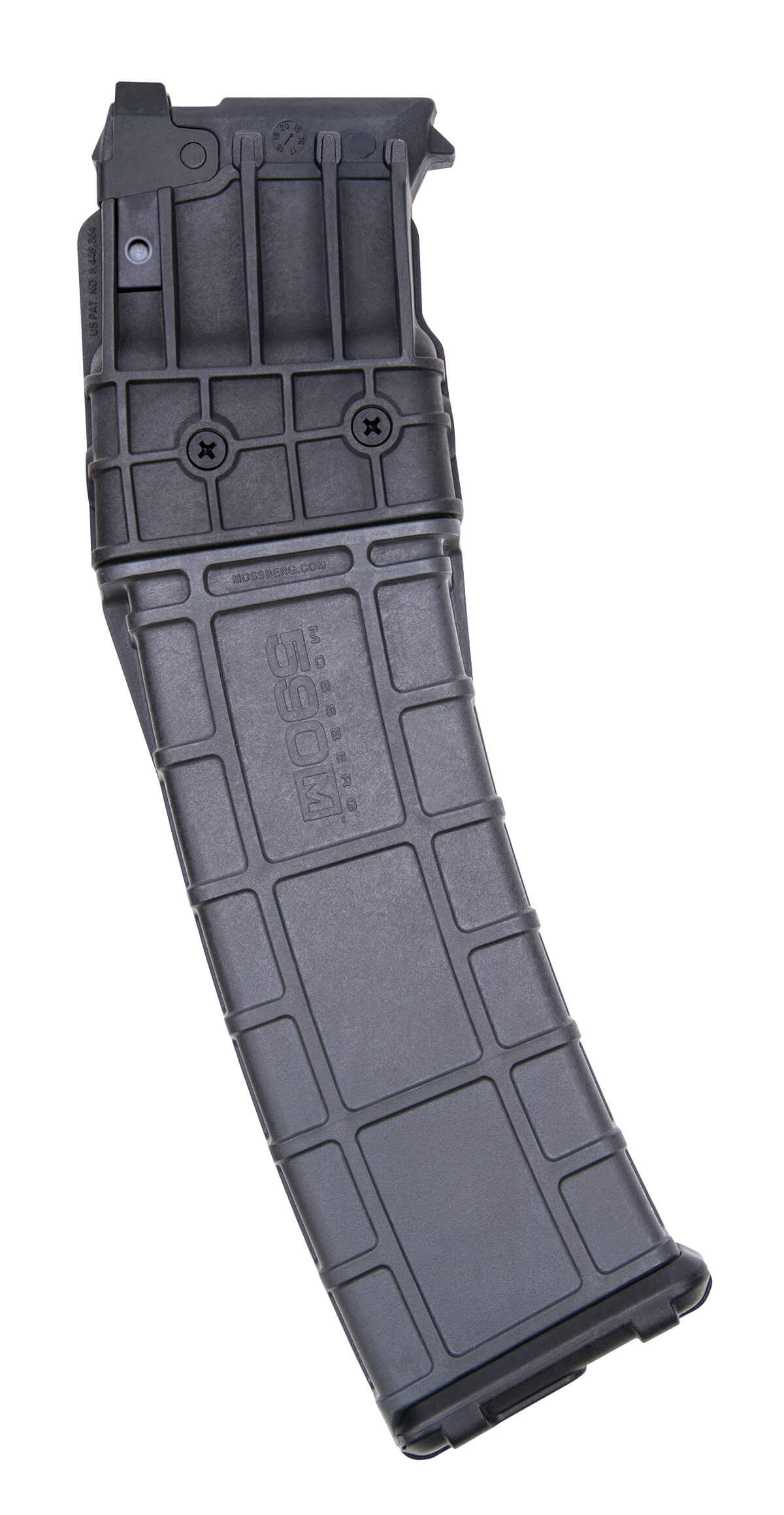 The Mossberg 590M Double-Stack 12 Gauge Shotgun 20 Round Magazine uses their patented double-stack design, used exclusively with Mossberg 590M/590RM magazine fed pump action shotguns.